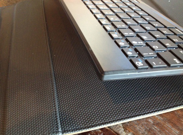 The one killer feature of this case, however, is the removable keyboard. It’s light and large enough for some serious typing. I like the versatility that the removable keyboard allows. You can use the iPad at a couple angles once the keyboard is removed from its magnetic slot.