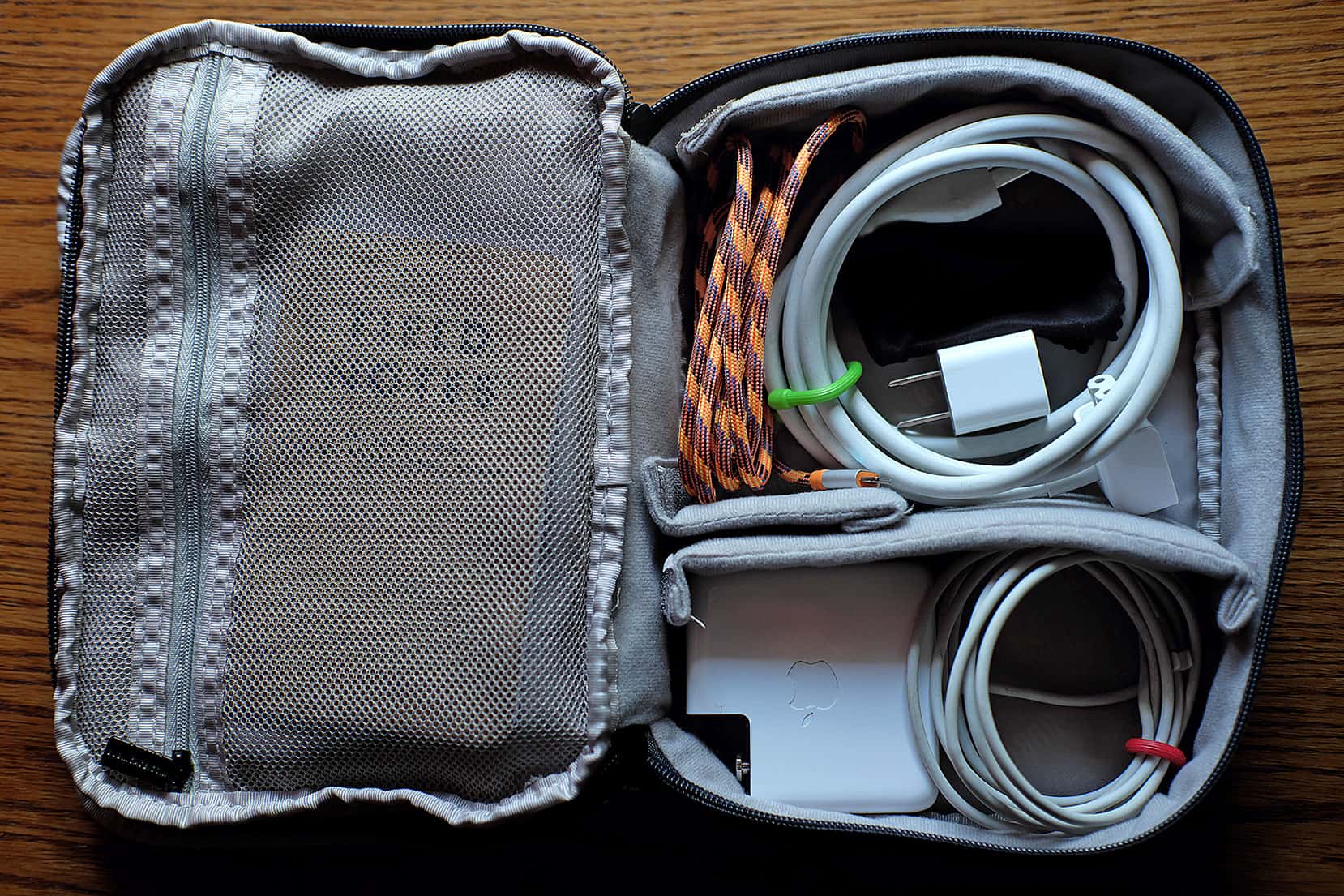 Pulling your charging cord from your shoulder bag or backpack can resemble that gag where you think you’re opening a can of peanuts and get surprised by springy snakes. Your bag’s other contents can catch on your cords and fly out.