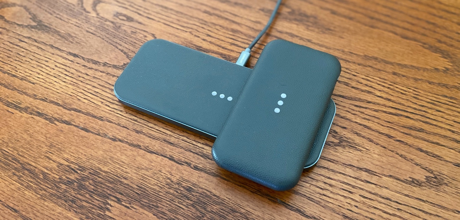 The battery inside the Courant Carry holds 8,000mAh/29.6Wh. And it can wirelessly transmit power at up to 10W, though iPhones top out at 7.5W.