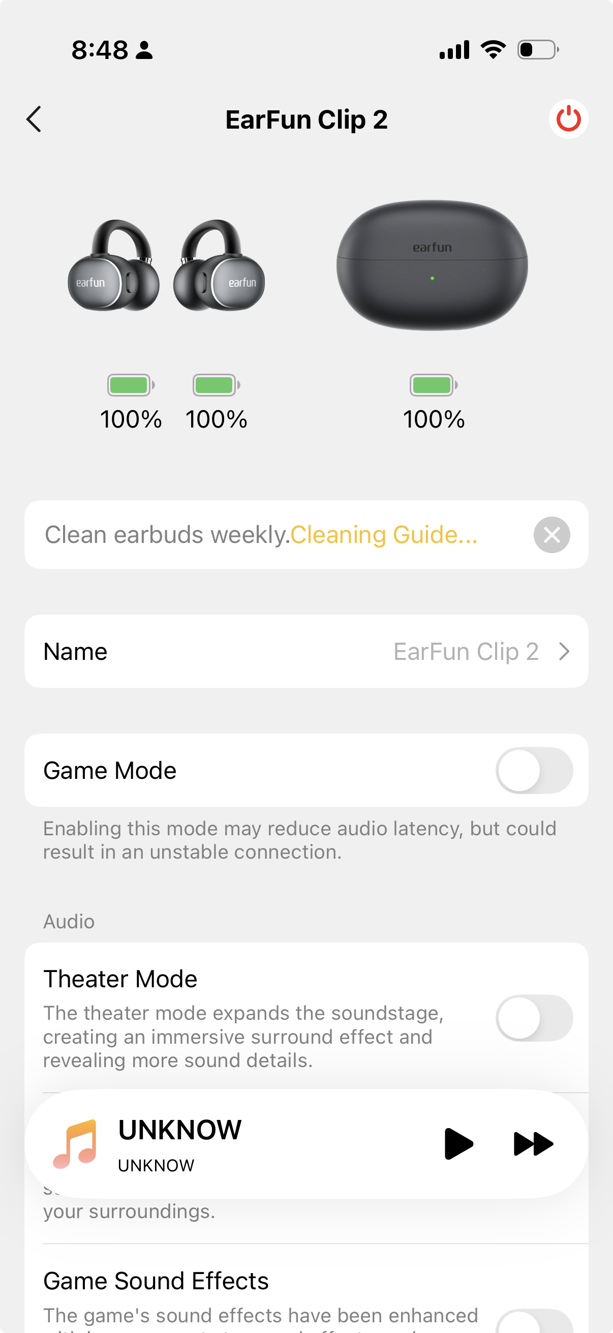 Theater Mode gives music and movies a surround-like effect. It’s not quite as immersive as Spatial Audio on the AirPods, but it’s still a nice perk that’s pretty rare for this price range. The Bass Boost preset does relatively little given the open-ear design, which is simply a physics problem no EQ can fully solve.