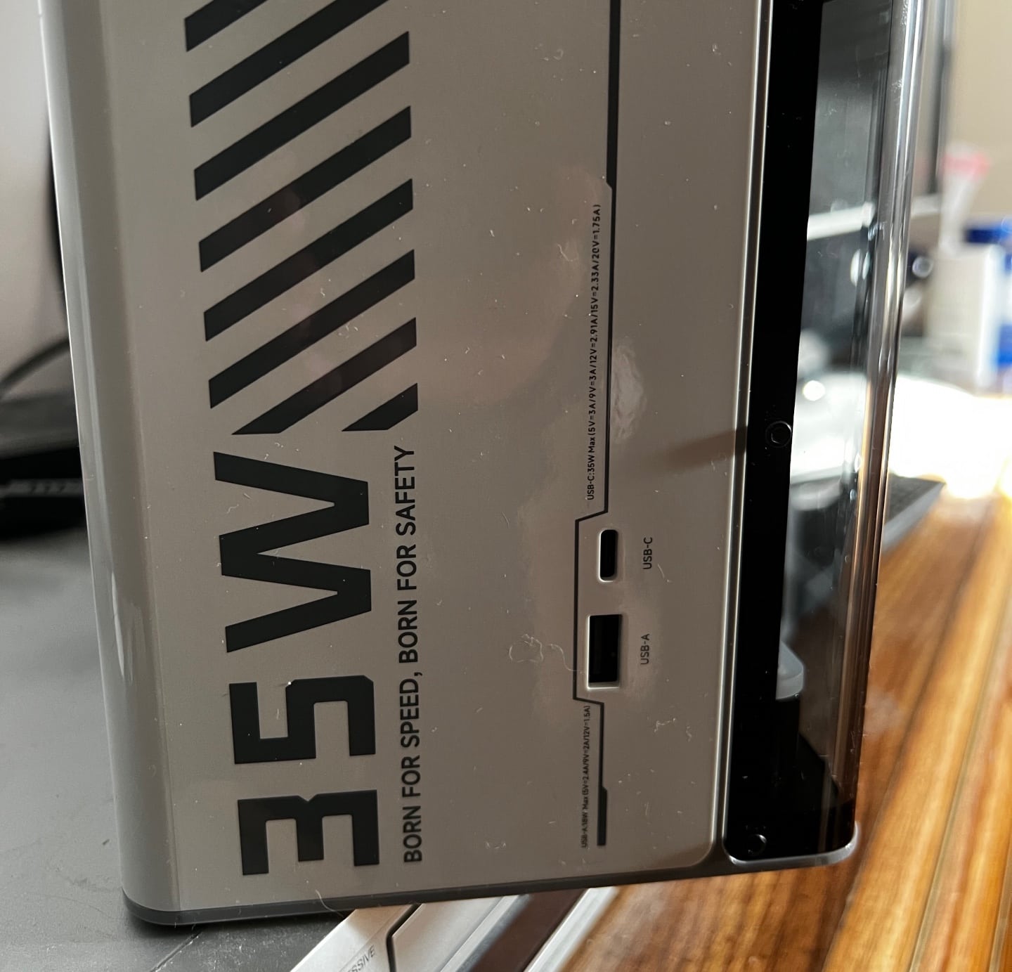 - USB-C port only (35W max.): 5V = 3A, 9V = 3A, 12V = 2.91A, 15V = 2.33A, 20V = 1.75A