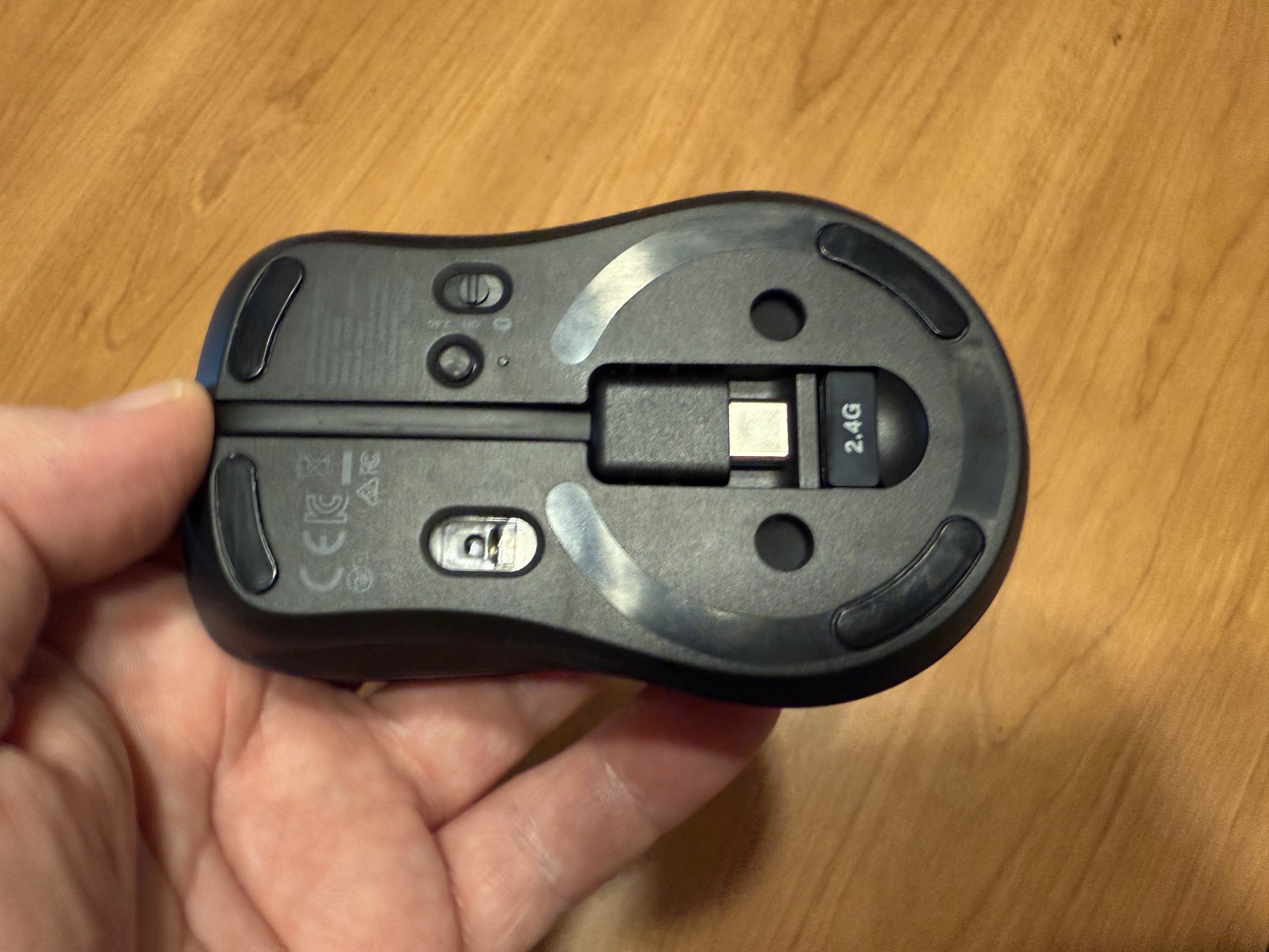 The MagMouse offers dual connectivity options: Bluetooth 5.0 and a 2.4GHz connection via an included dongle that stores in the base of the mouse next to the short USB-C charging cable. This versatility ensures compatibility with virtually any computing device, including MacBooks, iPads, Windows laptops and Android or iOS tablets.
