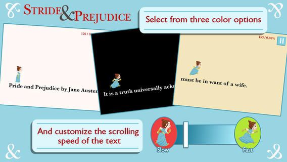 No Crusts’ commitment to educational software is Stride & Prejudice‘s greatest strength. You can play the app as a simple “test your skills” infinite runner where you restart the book each time you fail, or you can slow down the text speed, and even customize how the words appear on screen, to make reading more comfortable.