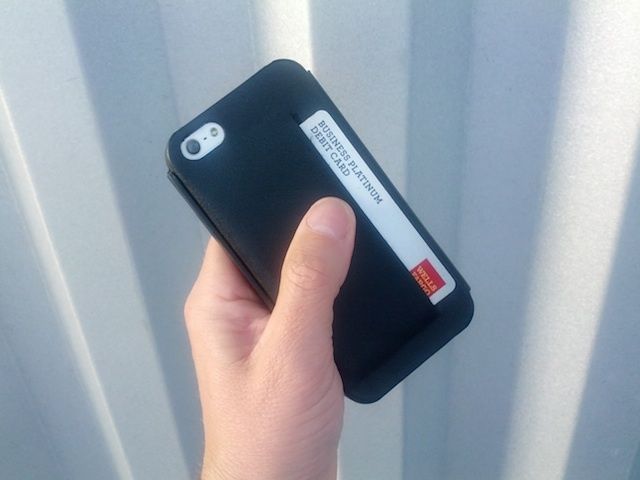 The CaptCase is certainly minimalist. About 1mm thick, it fits snugly onto your iPhone (in two sizes: 4 / 4S and 5) and latches shut with a magnetic flap that fits flush against the phone’s side. It is just black. In shiny fine-grained genuine leather — no logos or anything else on its sleek exterior. On the reverse is a handy little pocket for slotting in credit cards and cash, if you want to leave the wallet or purse at home. It even minimizes jeans bulk!