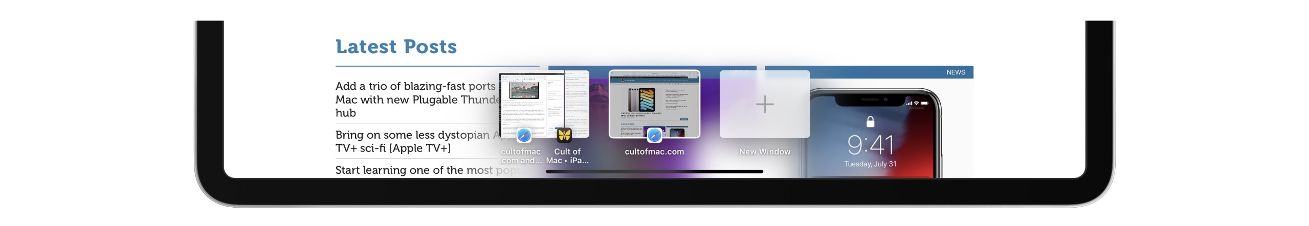 You can access the shelf inside any app by swiping up to reveal the Dock, then tapping the app’s icon. Alternatively, if you have a Magic Keyboard attached, you can use the Globe+Down Arrow shortcut. The shelf shows you all the windows you have open for the app that’s active, with a preview so you can see what’s going on inside each of them. You can tap any of them to jump right to it, or swipe up on one to close it (as long as it’s not active at the time).