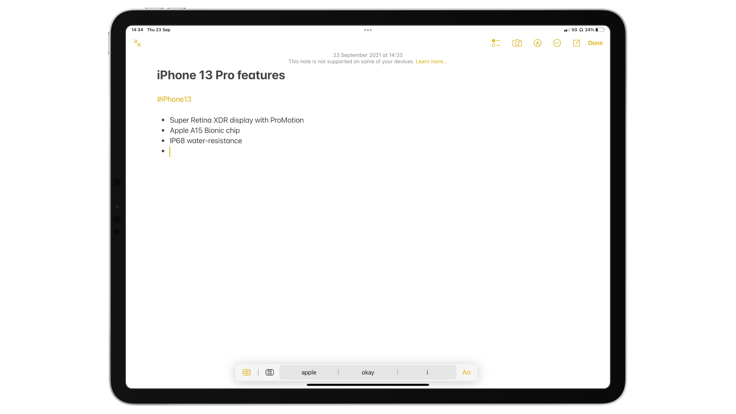 Notes also gets tags support in this iPadOS upgrade, which makes organizing and finding notes much faster. To add a tag, you simply type the hashtag symbol followed by your keyword (no spaces) anywhere inside a note. The tag turns yellow so it can be easily distinguished from other text.