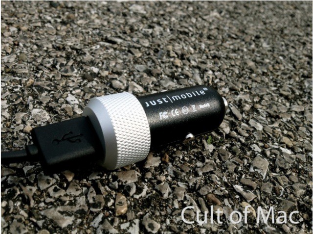 I’ve been using Just Mobile’s charger on the road with my iPhone 4S for about a month now. What I love most about the design is its Apple-like simplicity. The Highway features treaded aluminum around the tip (there’s a solid black version available as well) and and a green power light to let you know when your device is receiving a charge. The charge indicator is very reminiscent of the battery status indicator on the side of Apple’s MacBook. It’s subtle and flush with the aluminum design. Little things like that speak to the attention to detail Just Mobile puts into even the most trivial of accessories.