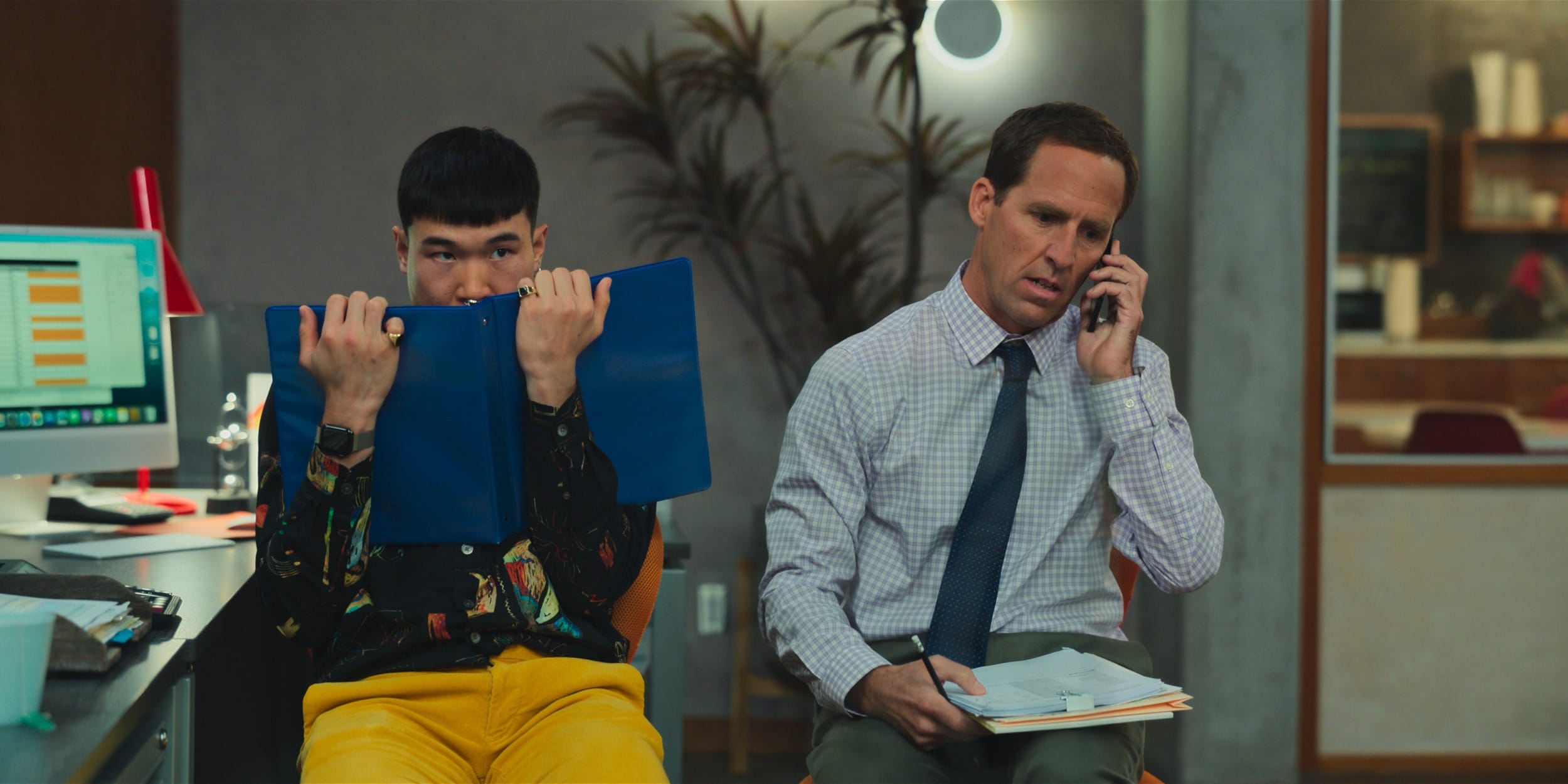 Nicholas (Joel Kim Booster) and Arthur (Nat Faxon) are the only people in the office when Sofia (MJ Rodriguez) gets some flowers delivered. She sees them and retreats to her office to scream at the man who sent them over the phone.