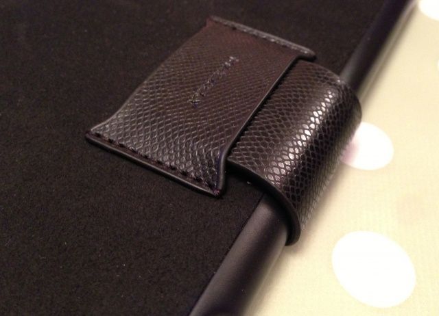 The front cover has a faux leather tab that slots into another piece of faux leather around the back. This ensures that the front cover stays closed when you want it to, and that it won’t pop open when your iPad mini takes a tumble. This also keeps the case secure when used as a stand for typing.