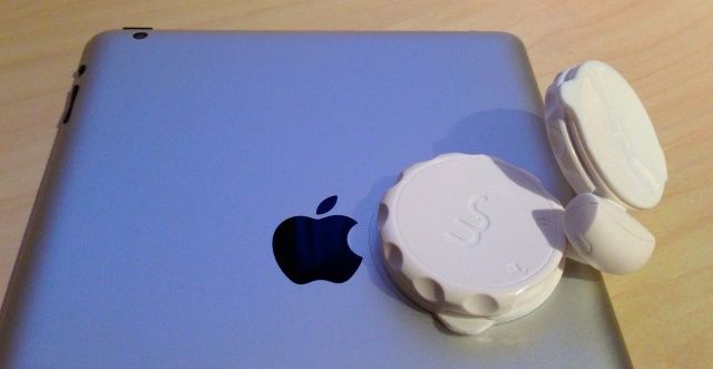 The MobileMount comes with four vinyl stickers that allow devices with a matte finish — like the iPad or the iPhone 5 — to stick better. They can also be used to improve suction on surfaces like desks or kitchen cupboards.