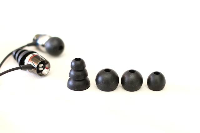 I also had an frustratingly difficult time trying to get the earpieces to fit right. In fact, I think these ‘phones are up there among the worst-fitting IEMs I’ve ever shoved in my ears. Part of the problem seemed to be the shape of the four sets of tips, none of which really worked for me; I eventually settled on using a flanged tip for just the right ear (which sealed well enough but was somewhat uncomfortable) and struggled with a standard tip for my left ear (the flanged tip was too uncomfortable in that ear) for the entire length of the test, only occasionaly able to achieve a decent seal. The other reason might have been the weight of the metal earpieces, or perhaps the shape of the nozzles.