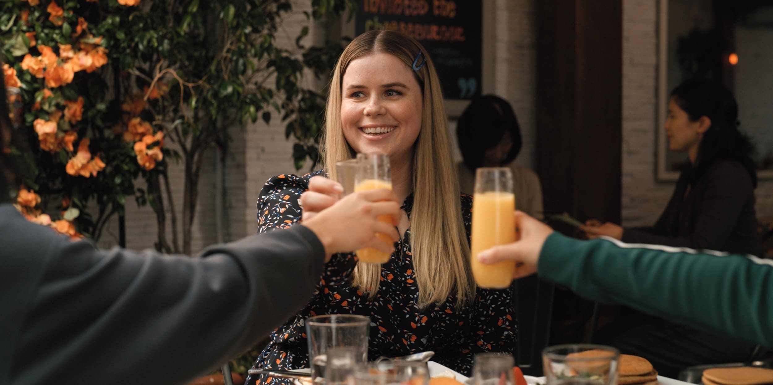 When Rachel and Poppy are hopefully toasting the things they wish they were doing well, they turn to Jo and ask her what she’s celebrating.
