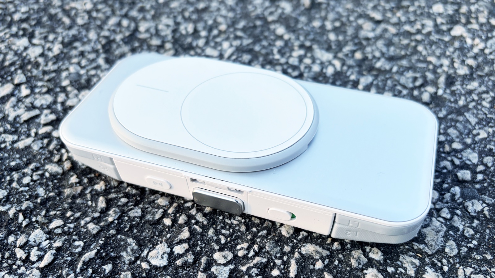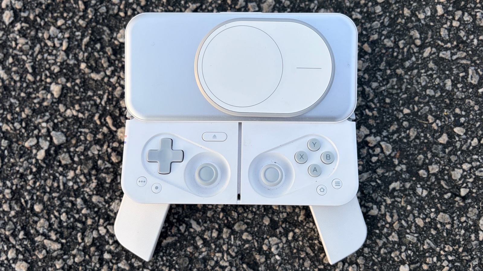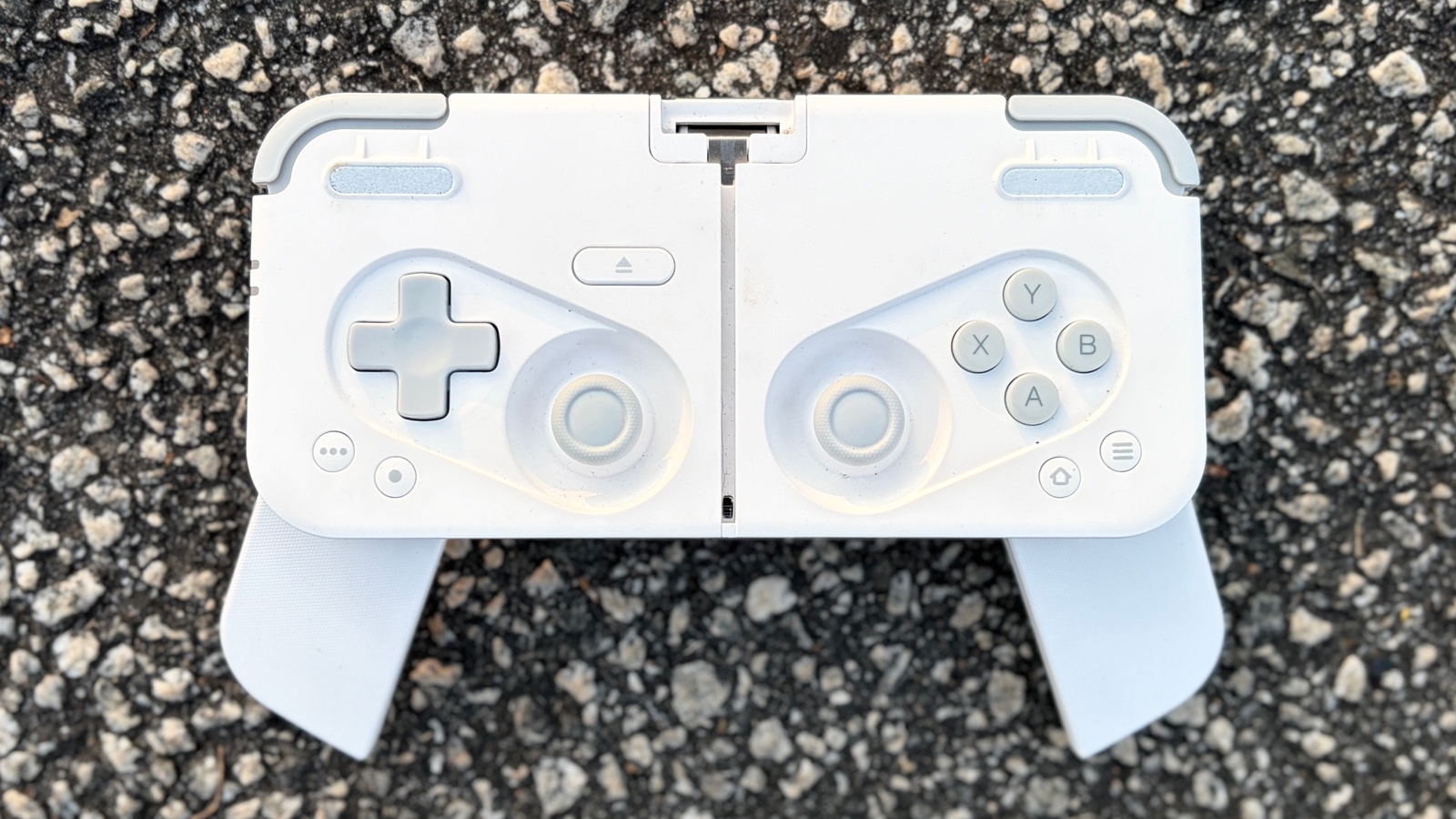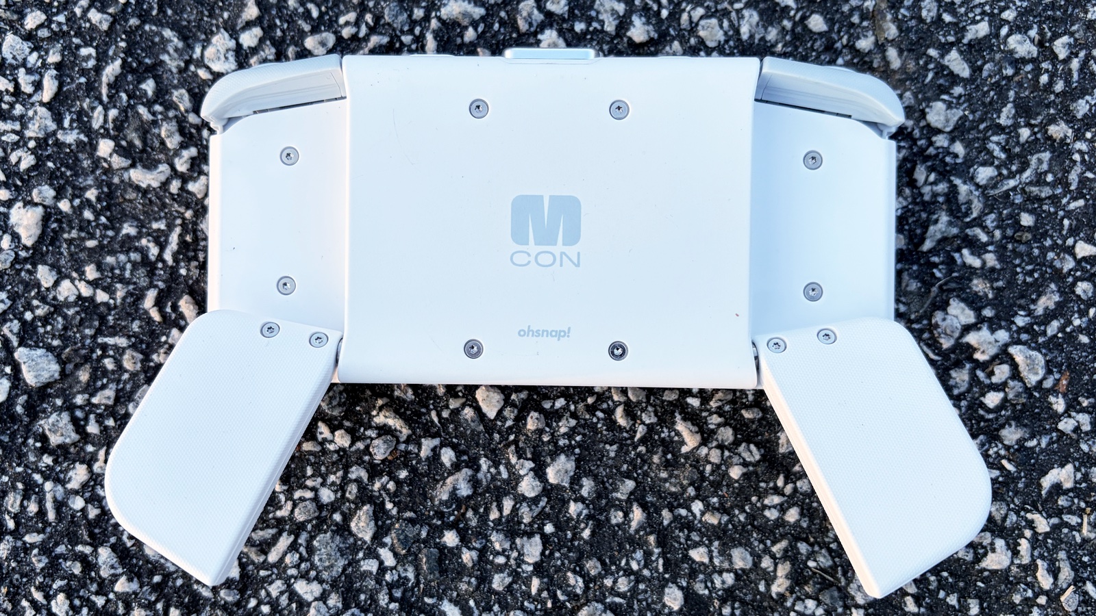 Picture a standard PlayStation controller, then shrink it down to 5.6 inches wide, and fold the grips under to further save space. Add a cover that protects the buttons and sticks, and slides up to become a magnetic holder for iPhones with MagSafe. Now you have a start at the design of the Ohsnap Mcon.