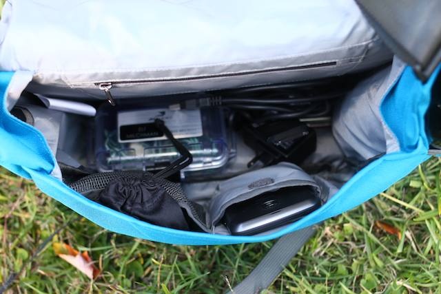 The MiniMass’s construction seems overbuilt for such a small bag; tough, 600-denier material, seatbelt-like strap and generous padding for the bottom and back of the bag. Yet the bag always seemed feather-light (it’s 411 grams) on my back, and very comfortable.