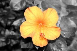 You will enjoy using ColorSplash to call a persons attention, using a common technique used by photographers and advertisers, to an object in a photo. In our example, we are drawing your attention to a specific object in our photo — a vibrant orange flower growing on one of our favorite Hibiscus bushes.