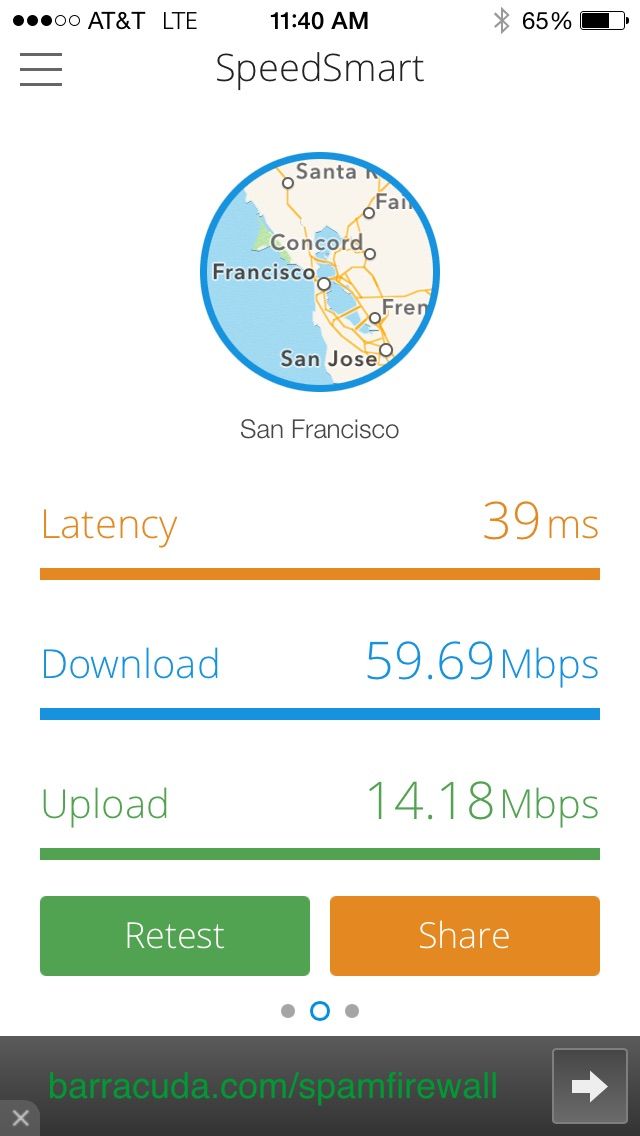I ran some tests on AT&T’s network in San Francisco. The iPhone 6 was twice as fast as my home Wi-Fi (approximately 60Mbps on LTE versus about 30Mbps on Wi-Fi), and it marginally beat out my old iPhone 5s.