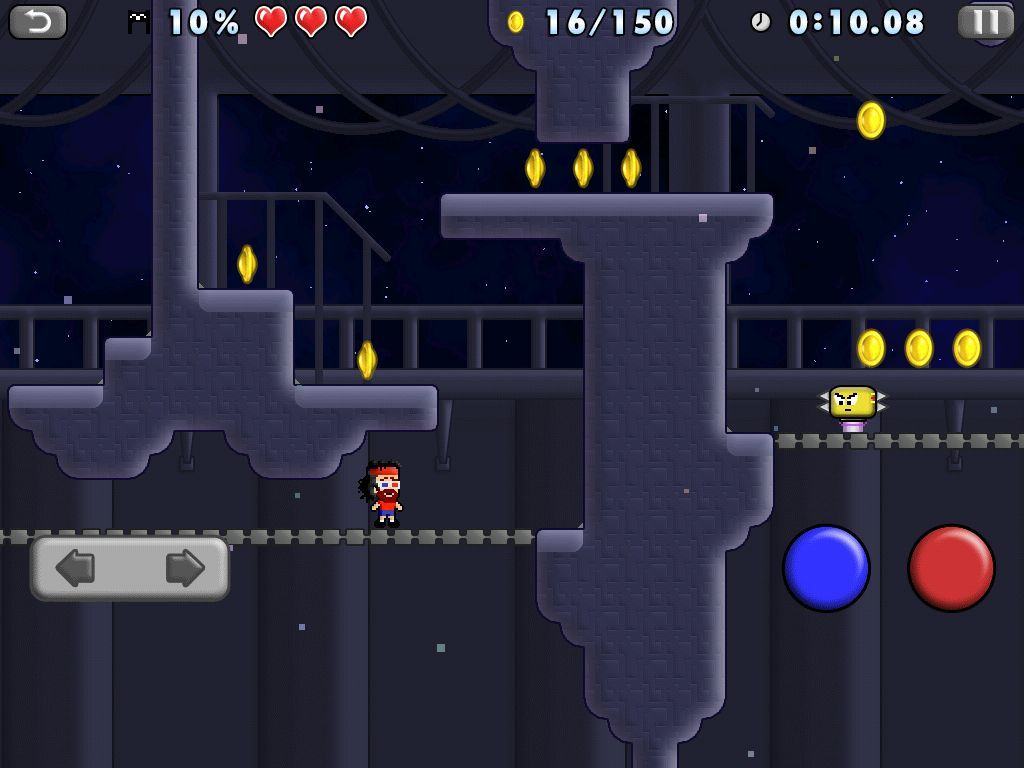 Mikey Hooks is primarily a speed game, as stars are earned for quick level completion. Race mode refines this even further, pitting Mikey against three evil ghost bots who race him to the end of each of the 12 levels. Beaver Tap Games plans on adding many more of these in future levels.