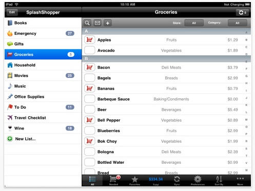 SplashShopper was a bit overwhelming for me, since I like simple lists that I can quickly create, work through, and mark as completed. I find myself happy enough using the built-in iOS Notes app and the notes will now sync along with my contacts, etc. in iTunes and MobileMe.