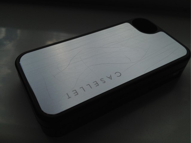 Finally, the CASELLET’s brushed aluminum rear panel looks really great, and it adds a touch of elegance to all that otherwise boring plastic. But the elegance disappears after just a few days of use when it becomes covered in scratches. The aluminum scratches incredibly easily, and after sliding your iPhone along your desk a few times or throwing it into a purse with your keys and change, it begins to look very worn and covered in sratches and scrapes.