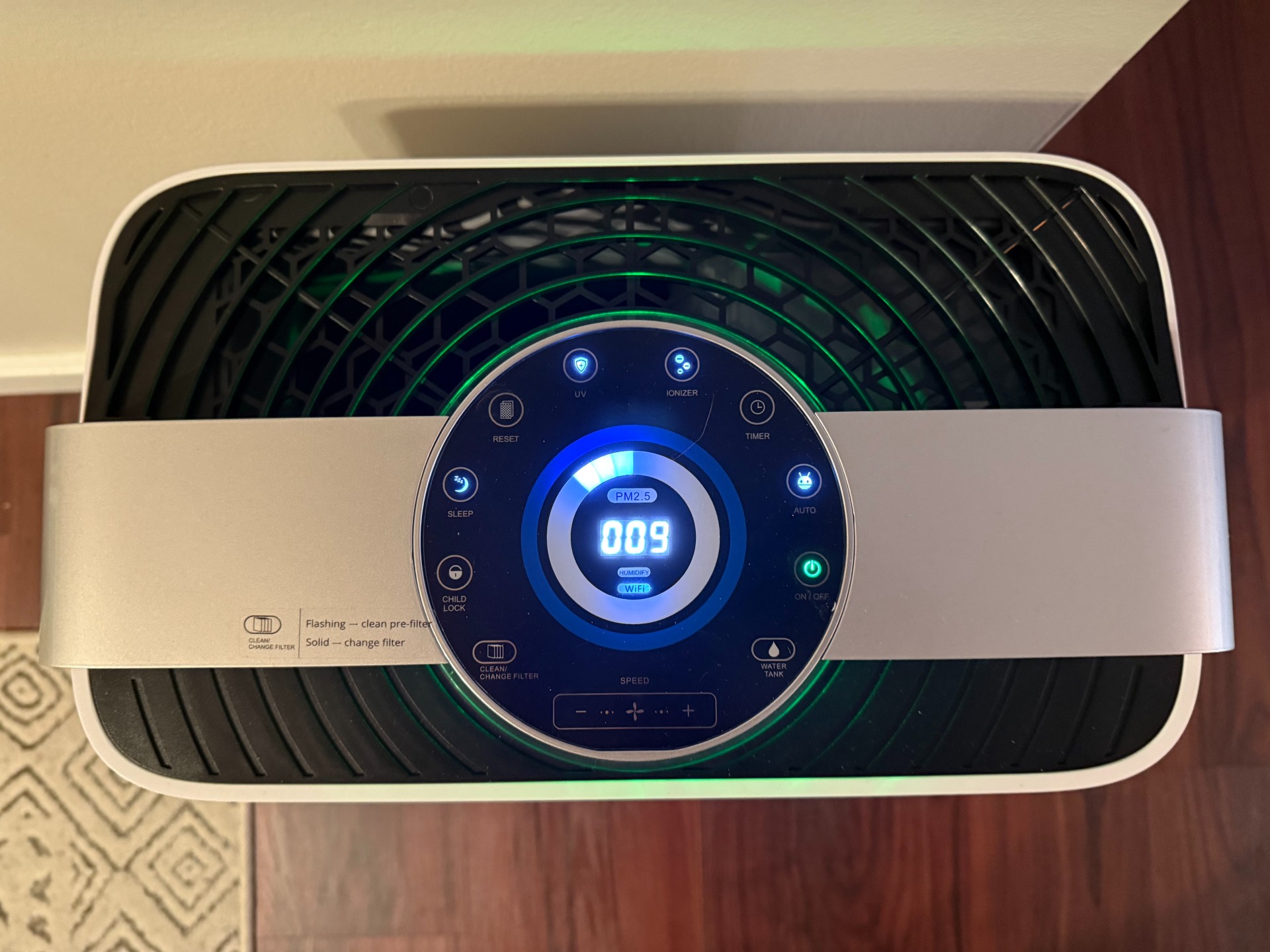 The Smart Auto Mode is particularly impressive. Using its laser PM2.5 sensor, the unit automatically adjusts fan speed through its 8-speed range based on real-time air quality readings. The color-coded display makes it easy to see at a glance how clean your air is. I’ll be curious to get a better look at it in the warmer months, with doors and windows open, when worsening outdoor air quality invades.