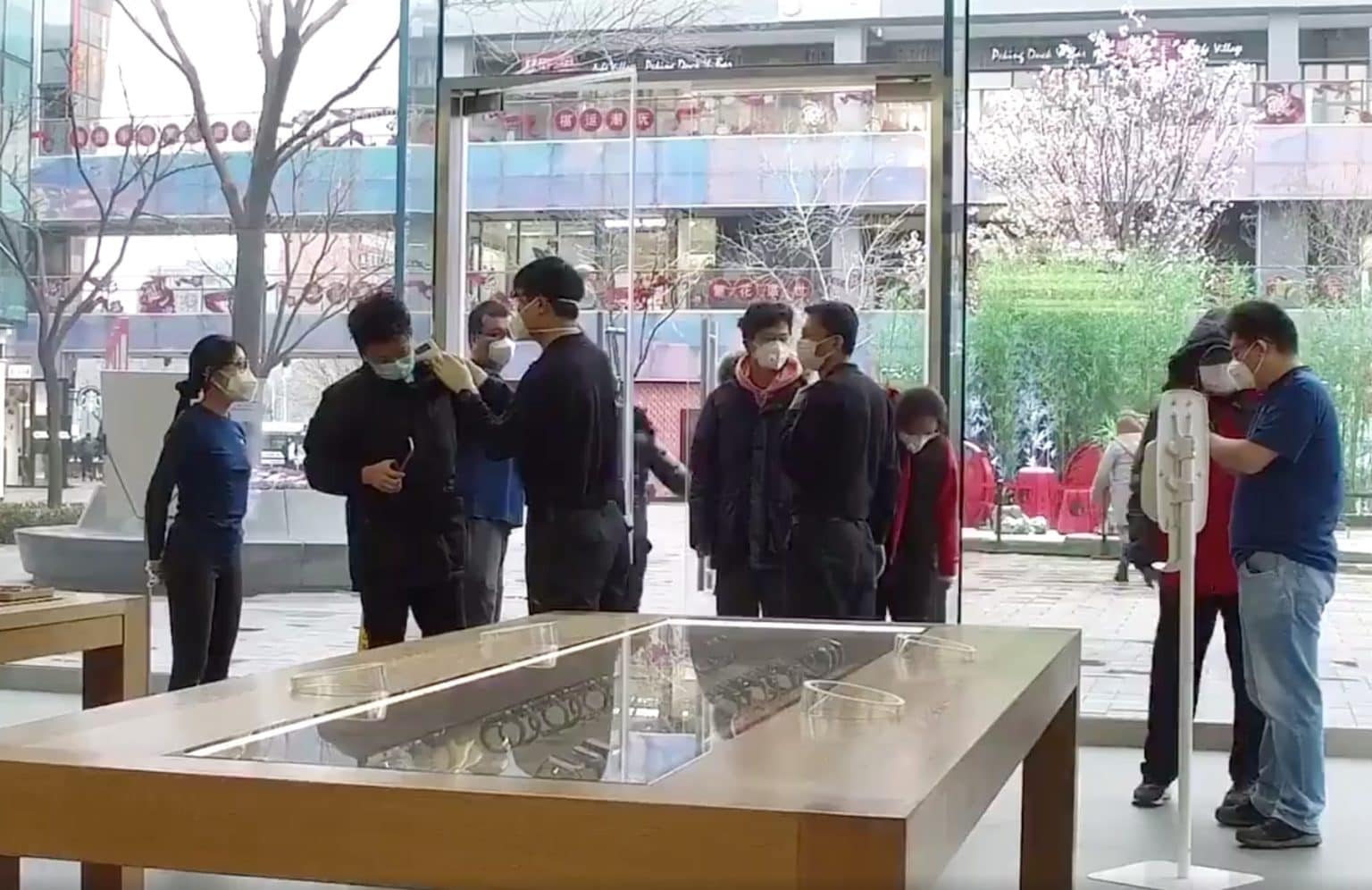 Apple retail stores in Beijing are taking customers’ temperatures and requiring them to wear surgical masks as the area tries to normalize amidst the coronavirus outbreak in the country.