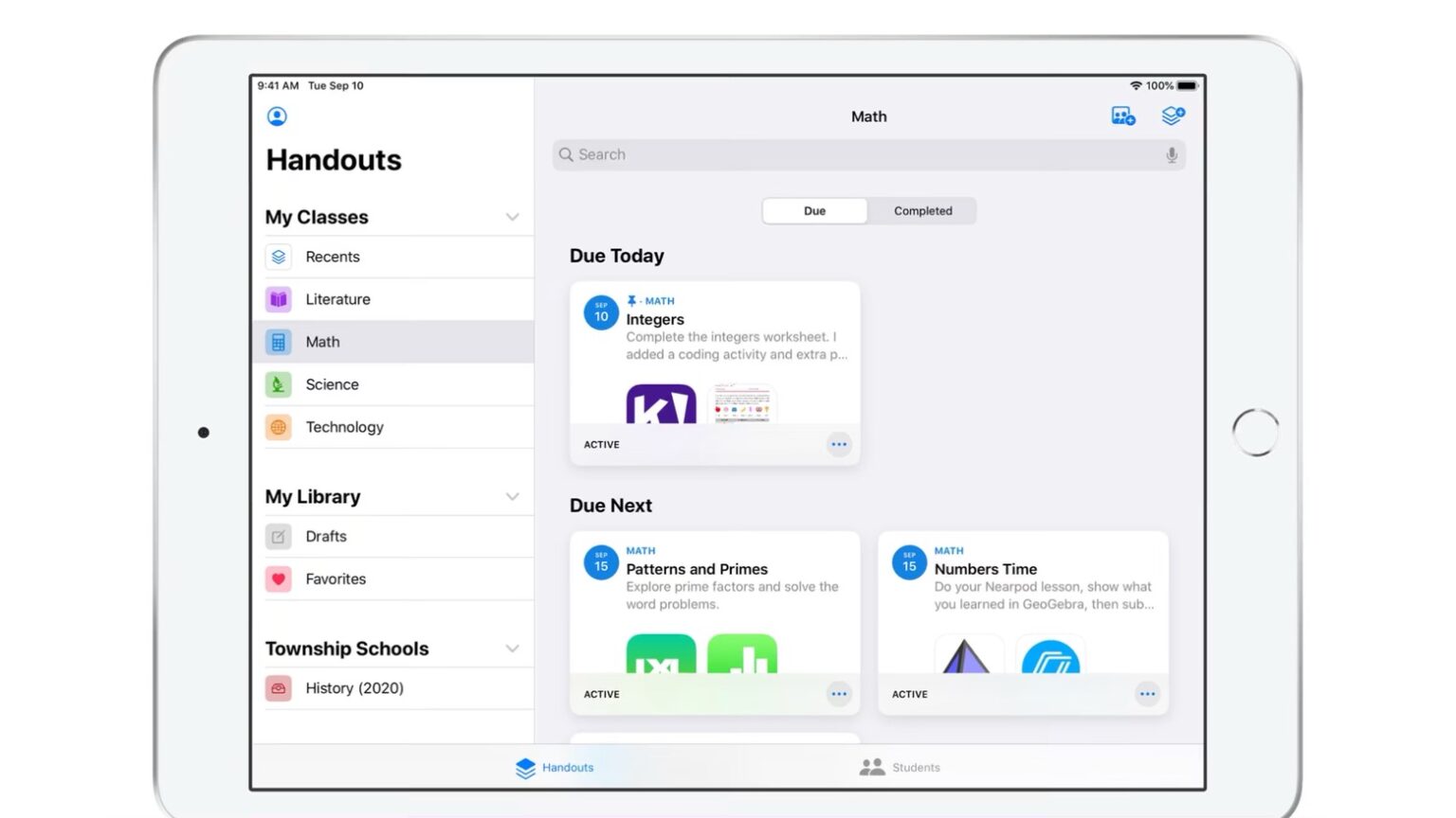 Notifications that Handouts are due soon are part of Apple Schoolwork 2.0. Photo: Apple