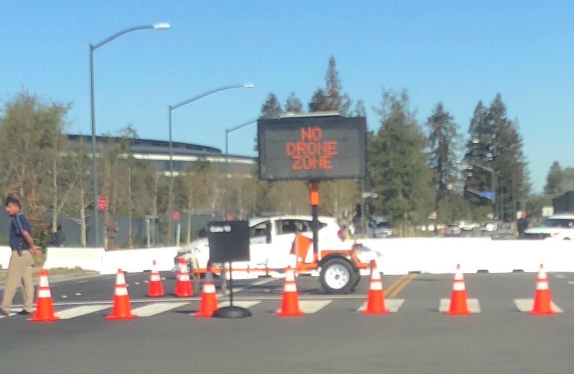 Apple has no time for your drones! Yesterday was Apple’s annual investors meeting, and one of the attendees tweeted this photo of signage erected at Apple Park declaring it a “no drone zone.”
