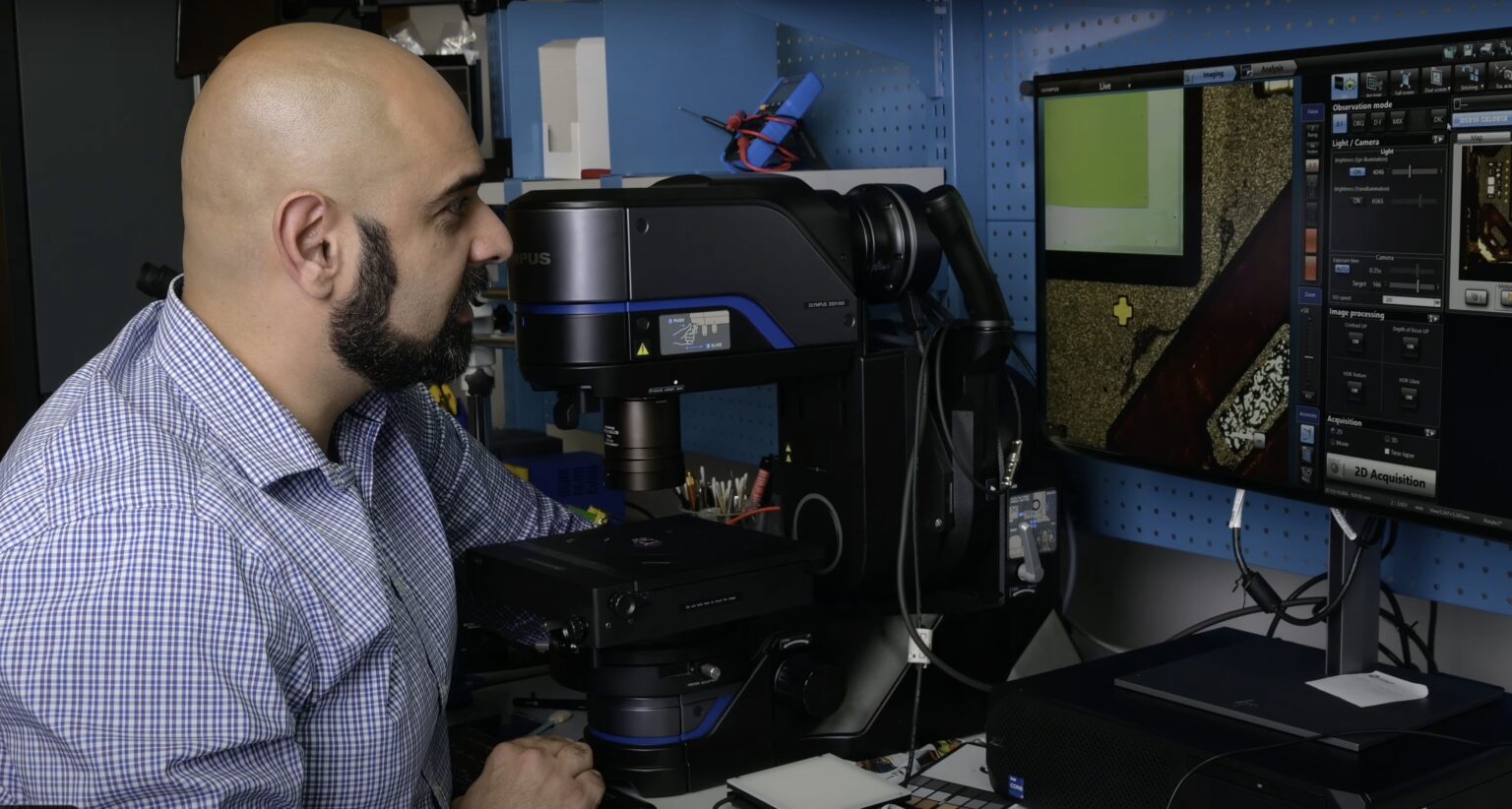 This borrowed microscope lets the video zoom in thousands of times on iPhone 15 components.