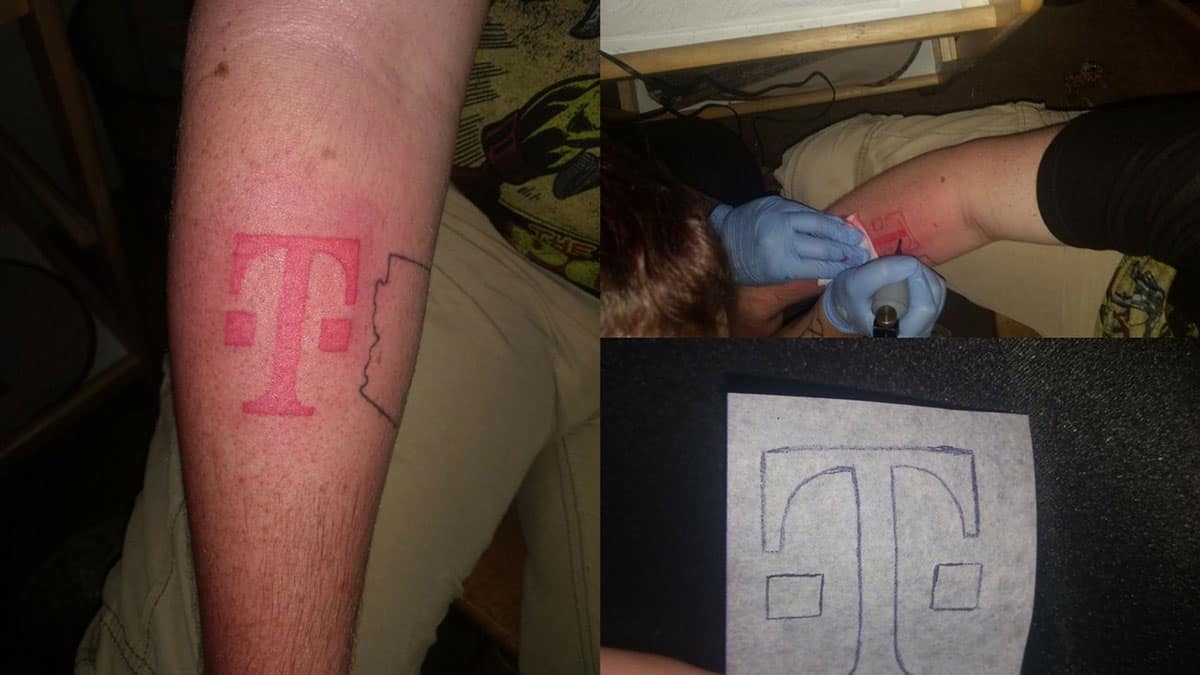 Philip Harrison got a free iPhone 8 from T-Mobile for this permanent advertising inked on his arm. Photo: Philip Harrison/Twitter