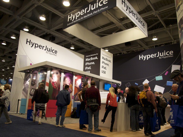 HyperMac’s booth is front and center of the show hall. It is draped in a couple of big banners, giving it by far the biggest presence at this show, which is made up mostly of small companies in small booths.