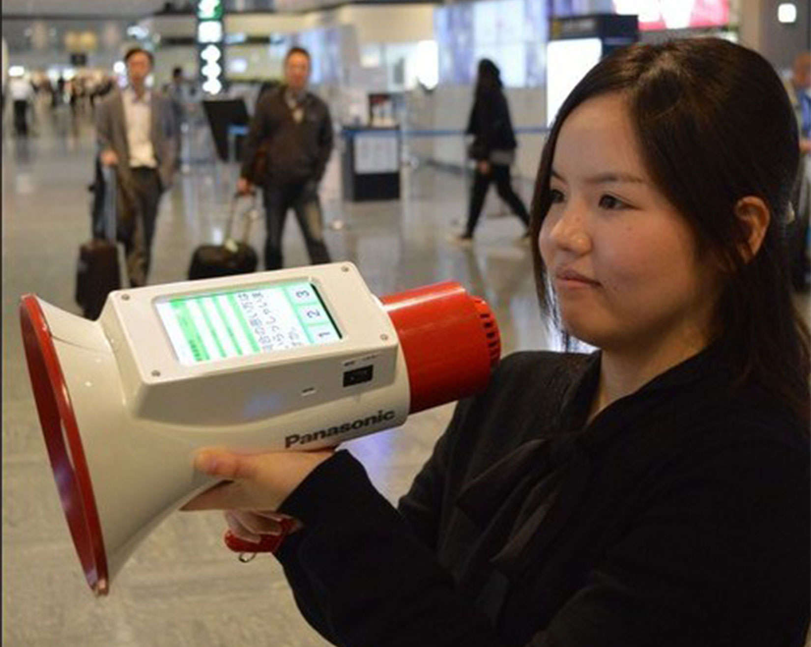 A Tokyo airport is trying to solve the language gap with international travelers with a megaphone that lets the user communicate in three different languages. A worker speaking one of three languages, Chinese, Korean or English, can have their message broadcast in the other two.