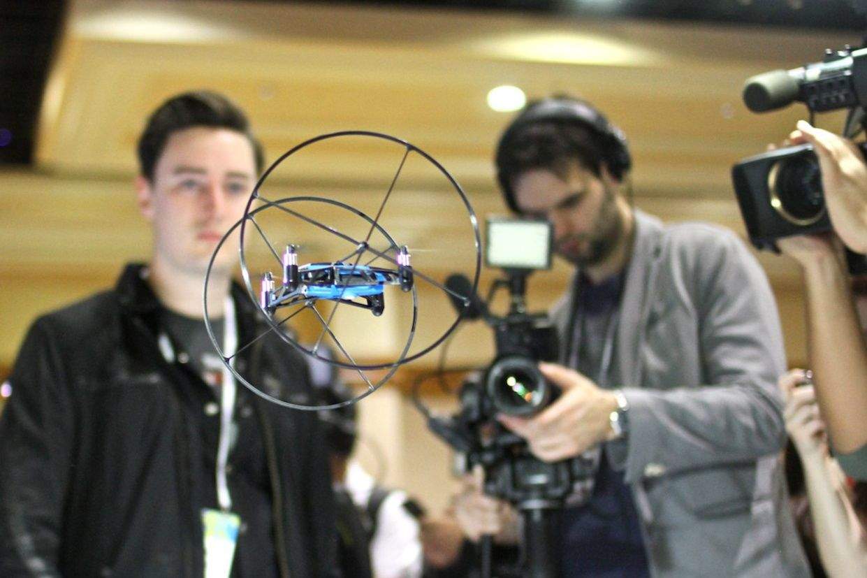 Whatever the reason, Parrot’s new MiniDrone — a miniaturized version of their AR Drone with no camera but detachable wheels that let it roll about on the ground or “climb” a wall — drew throngs of tech bloggers and had camera crews lined up to film.