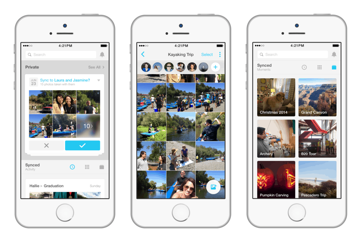 The concept is highly reminiscent of Facebook’s Moments app, which identifies people and places in images and then allows users to easily share with friends, without having to post the pictures to Facebook.