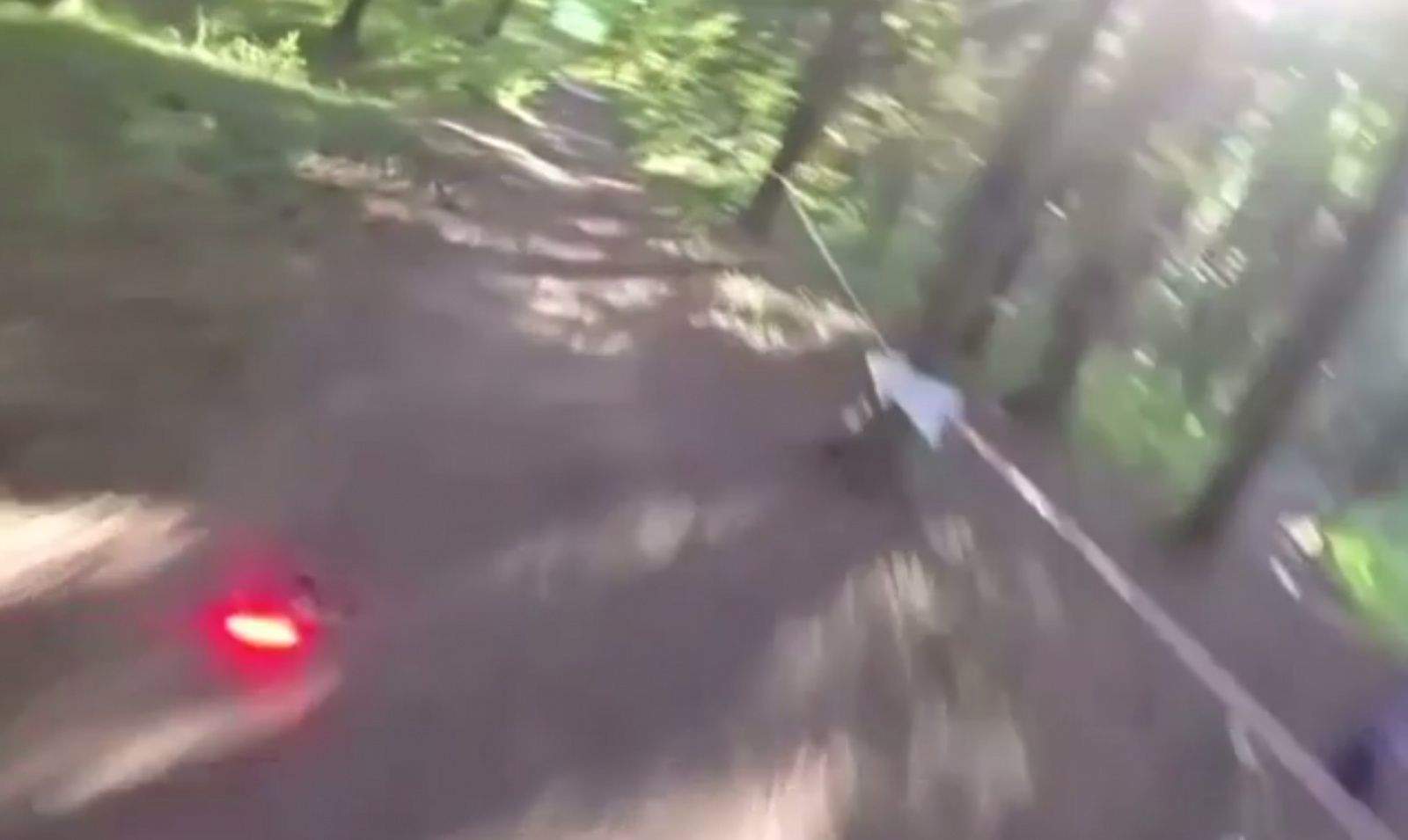 It may be hard to tell from the image above, but that’s a hot-rodding quadcopter speeding through the forest at about 100 miles an hour. The drone is taking part in the first large-scale first-person video drone race ever in the United States, held last week in Los Angeles.