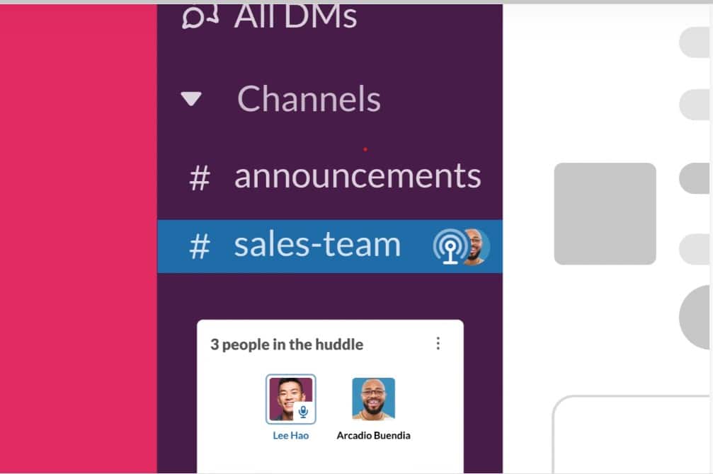 Slack Huddles, or quick audio chats, are easy to set up within the app. Photo: Slack