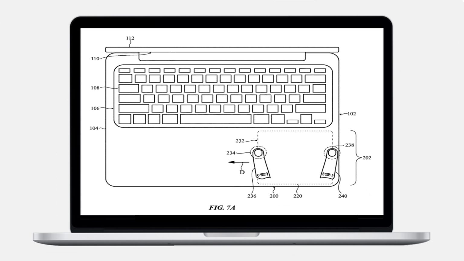 And a second patent goes even further, making the keyboard and the area around it touch-sensitive.