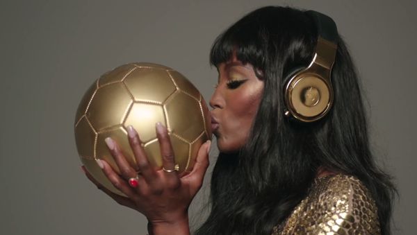 Having previously become the hit advertiser of the World Cup with its “Game Before the Game” ad (despite being banned from press events), Beats’ follow-up is a great marketing stunt. It also adds supermodel Naomi Campbell, who was photographed with the gold-dipped headphones and a similarly shiny soccer ball, to the list of high-end celebrities associated with Beats.
